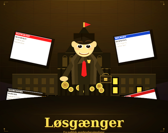 LØSGÆNGER er en politisk overlevelsessimulator med 20 runder af skandaler, alliancer, sociale medier og mediecirkus. Vælg din politiker-persona, byg relationer og hold dig i sadlen — for enhver pris.